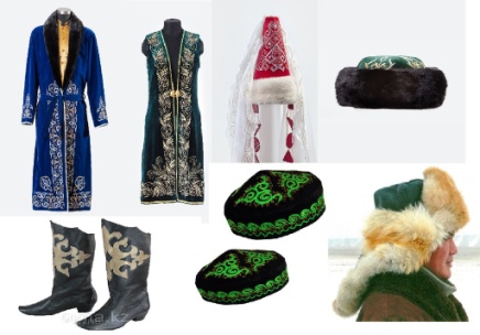 - Қазақ халқының ұлттық киімдеріде бар. Олардың барлығы қазақтың ұлттық оюларымен безендірген. Мынау қыздарға арналған үкілі тақия. Оны нәзік аруларымыз басына киген. Әдемі тастармен безендірген.