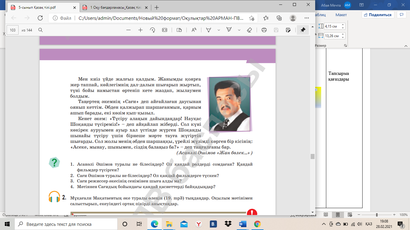 Тапсырма. Оқылым мәтіні. Мәтінді түсініп оқы.
