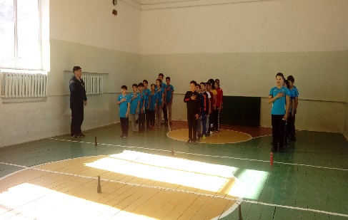Дене қыздыратын жаттығулар жасалуда Әр сынып өз тобымен, ұранымен таныстыруда