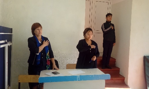 Тақырыппен таныстыруда Қ.Р.М. ән ұраны шырқалуда