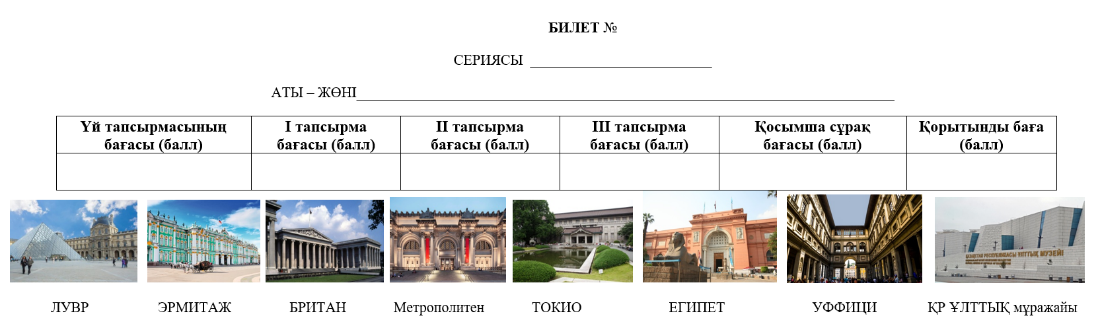 Дескриптор: - Әрбір мұражай бойынша талдау жасайды; - Әлем мұражайларының ерекшеліктерін ажырата алады;