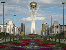 7. Астана – Бәйтерек Астана – Бәйтерек «Бәйтерек» монументі Есіл өзенінің жағасындағы Қазақстанның астанасы Астана қаласында орналасқан. Металлдан, әйнек пен бетоннан жасалған бұл «терек» сәулеттік мағынасы жағынан да, жасалуы жағынан да бірегей: биіктігі 105 метрлік металл құрамасынан, салмағы 1000 тоннадан жоғары бес жүзге жуық қададан тұрады. Монументтегі барлық дүние - төбесіндегі алтын күн, 97 метрлік биіктігі, және аспан әлемінің үш негізін кейіптейтін үш аймаққа бөлінген ішкі архитектурасы белгілі бір символды білдіреді. Әлемде бірінші рет диаметрі 22 метрлік және салмағы 300 тоннадан тұратын күннің түсуіне қарай түсін өзгертетін «хамелеон» әйнегінен жасалынған шар биіктігі жағынан рекордқа (әлемдегі ең үлкен шардың ең биіке көтерілуі бойынша) ие болды. Әлемдегі ең үлкен шардың ең биіке көтерілуі бойынша Қазақстан астанасында асқақтаған бұл «терек» жаңартулардың сәулеттік символы, тәуелсіз Қазақстан символы ретінде орын алады.Бәйтеректің негізгі идеясы Елбасы Нұрсұлтан Назарбаевтың эскиз-нобайы негізінде өмірге келді. Ол бейбіт өмір мен келісімге ұмтылған барлық қазақстандықтардың ғұмырлық мұратын білдіреді. Бұл нысан әлемдік сәулет өнерінің жоғары талаптарына толығымен жауап береді. Есіл өзенінің сол жағалауында бой көтерген зәулім «Бәйтеректің» биіктігі 97 м (Астана қаласының елорда статусына ие болған жылға байланысты таңдалған), диаметрі 27 м; негізгі есікке бастайтын әшекейлі темірбетон саты жер бетінен 4,8 м жоғары орналасқан. «Бәйтерек» нысаны үш бөліктен тұрады; жер асты бөлігі ұлттың тамыр жаюы, ал одан кейінгілері өркендеу кезеңдерінің нышандарын білдіреді. Ең жоғарғы жағында «Аялы алақан» композициясы орын тепкен; оған қол табы тигенде шиыршық түрінде жарық ағып түсіп, сәуле алақанға құйылады және Қазақстанның мемлекеттік әнұраны ойналады. Одан әрі қосымша түріндегі композиция өз негізінен бөлініп, жер бетіне қалықтап тұрғандай әсерге бөлейді. Ұшар басында алтын шар орналасқан. Арнайы шынылармен әйнектелген «Бәйтерек» күмбезінің салмағы 70 т, ал алтын шардың үстіңгі ауданы 1553 м. Осынау ғаламат шардың панорамалық залынан Астананың кешегі және бүгінгі сәулеті - «ескі» және «жаңа» көрінісін тамашалауға болады. Алтын шар мен ғимараттың негізгі кіре берісі бір-бірімен «оқпан» деп аталатын салмағы 695 т металл құралыммен байланысып, жалғасқан. «Бәйтерек» кешенінде келушілердің демалып, асықпай отырып төңірегін көруге мүмкіндік беретін дәмханасы да бар. Астананың орталығында көкке бой созып тұрған «Бәйтерек» - қазіргі Қазақстанның нышан-символы, қазақ халқының қайта өрлеуі мен түлеуінің, мемлекеттілігінің, биіктік пен тереңдіктің, кеңдіктің белгісі, дархандықтың көрінісі іспетті. Ол елорданың халық көп баратын жерінің бірі. Астана қаласында Архитекторлар одағының халықаралық қауымдастығы өткізген 10-байқауда беделді халықаралық қазылар алқасының шешімімен 2002 жылғы ең таңдаулы жоба және құрылыс ретінде "Бәйтерек" кешеніне Гран-при үздік айырым белгісі берілді.