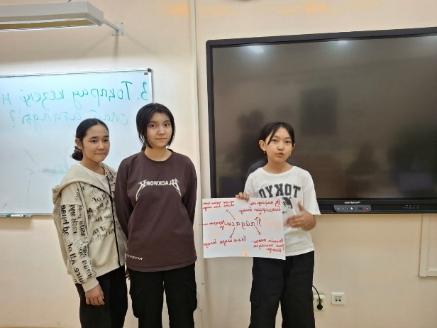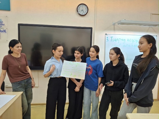 Тәрбие сағатына оқушылар белсене қатысып, интернеттің пайдасы мен зияны туралы өз ойларын жазып, таныстырды.