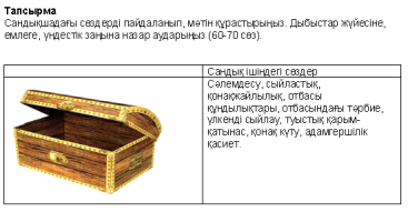 Әлеуметтік желілер туралы ақпарат алады, ауыспалы өткен шақ тұлғасымен танысады.:Қазақстандағы әлеум.желілер жайлы білімдерін кеңейтеді,мәтін ішінен ауыспалы өткен шақты табады.әлеуметтік желілердің әсері туралы пікір айтып, түсінгенін дәлелдейді. |