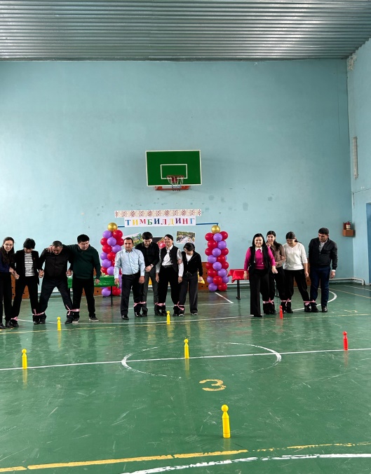 Ұйымдастыру кезеңі: Келген қонақтарға әдемі көңіл күй жағымды атмосфера сыйлай отырып, жақсы тілектер жазылған тәттілер ұсынылды. Ұсынылған тәттілермен тинбилдингке қатысушыларды топқа бөліп алдық. Келген қонақтар үш топқа бөлінді «Бәйтерек», «Жалын», «Қыран». Қатысушыларды ойын кезеңдерімен таныстырылып өтілді.