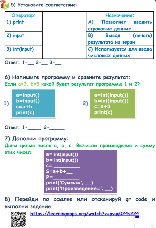 Записывают линейные алгоритмы на языке Python (пайтон) |