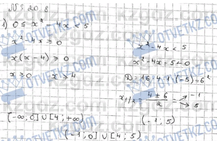Жауабы: (-∞;1)U(6;+∞) Дескриптор: -квадрат үшмүшені 0-ге теңестіріп нолдерін табады, -сан өсіне салады -аралықтардың таңбасн анықтайды -теңсіздіктің шешімін табады |