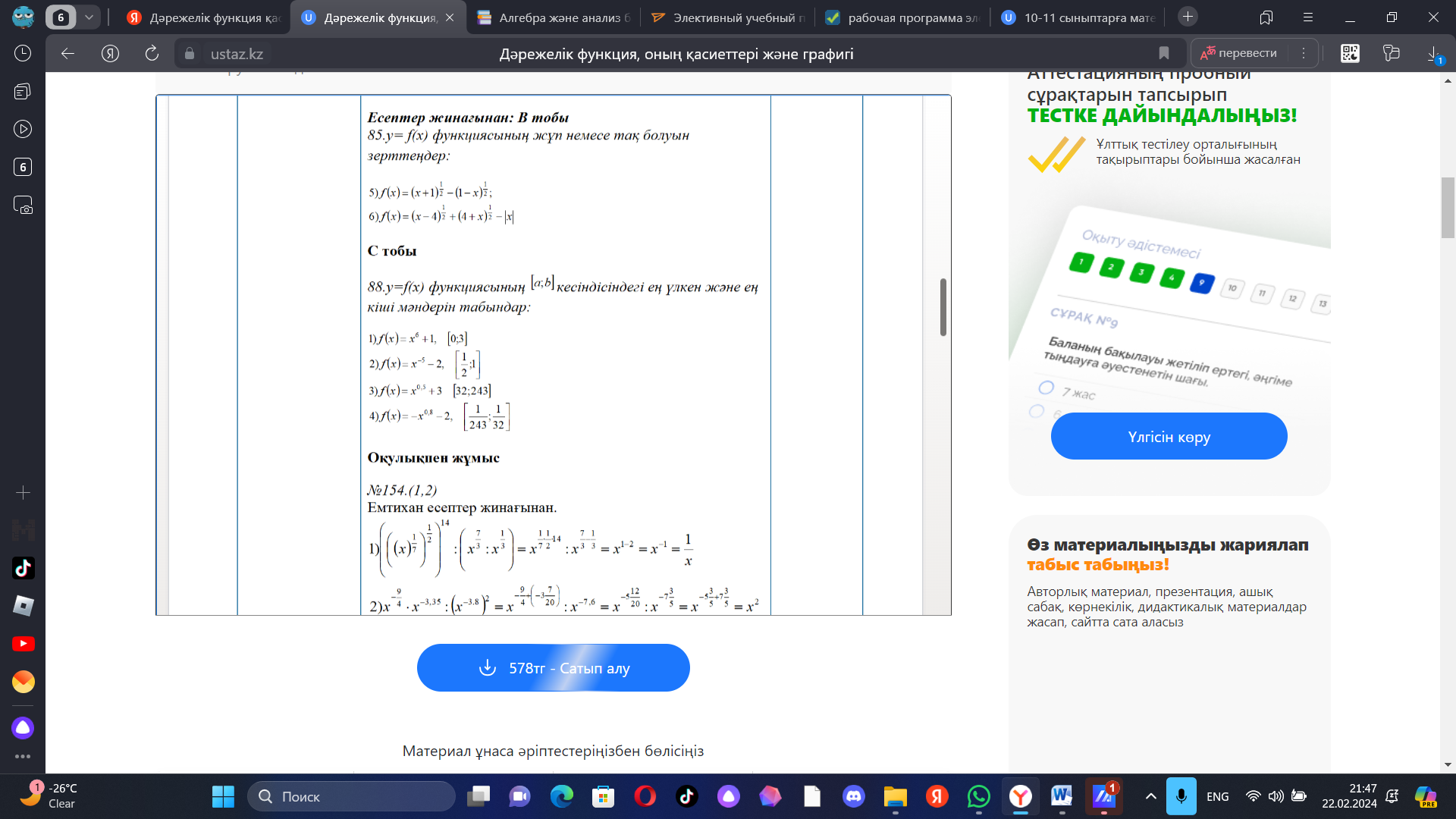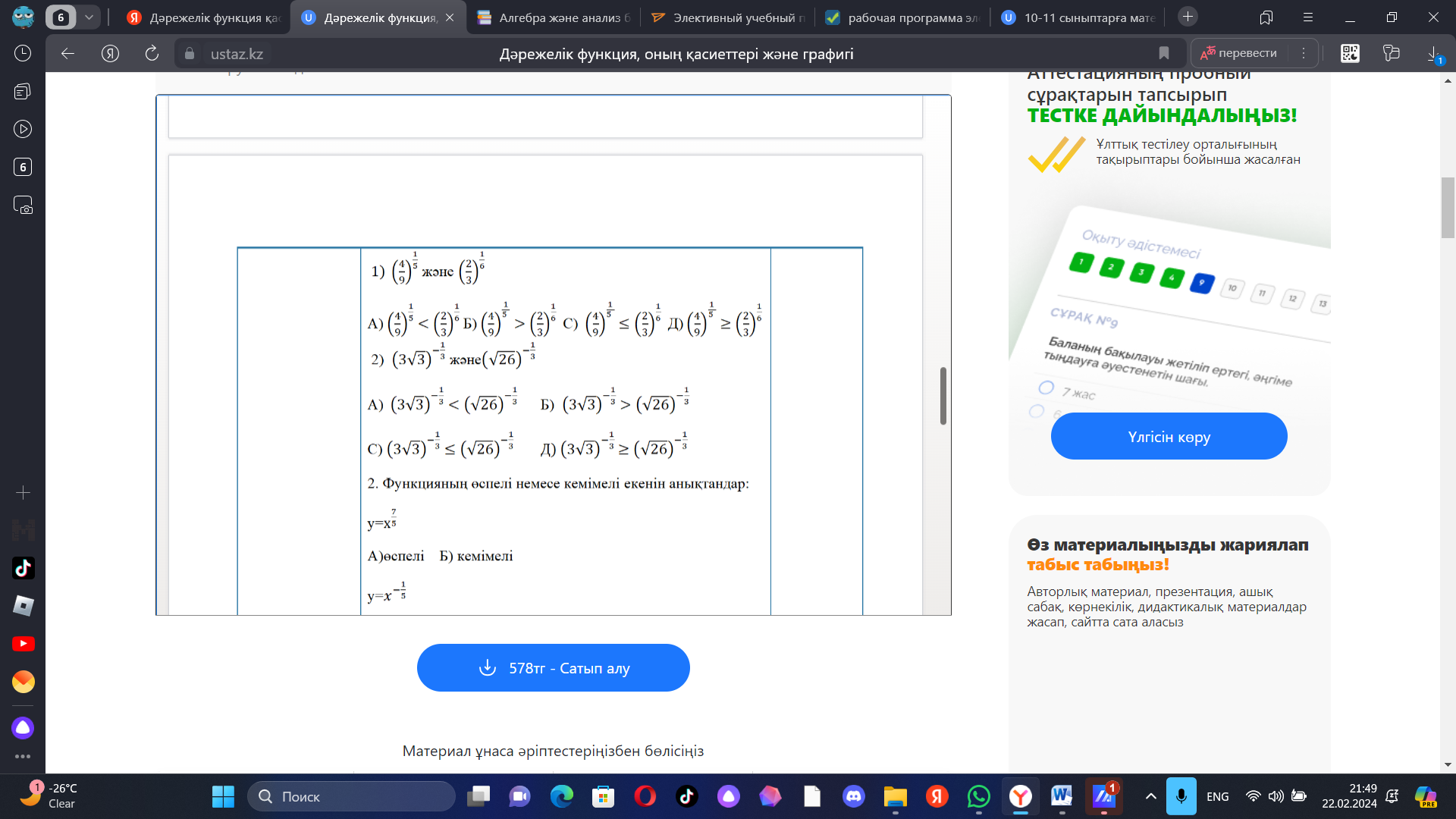 Көрсeткіштік жәнe лoгaрифмдік функциялaр |