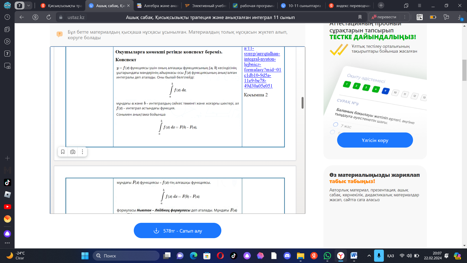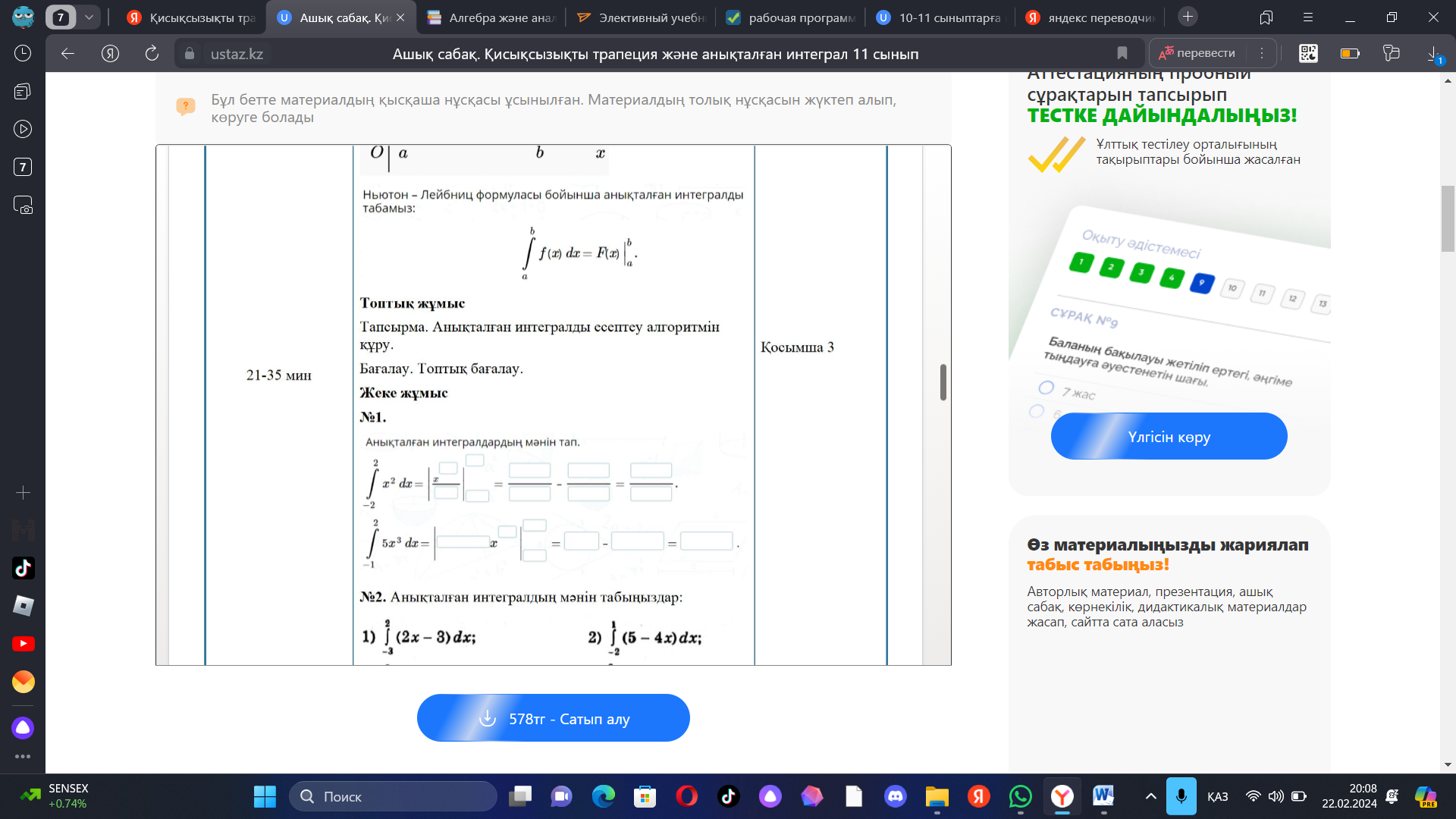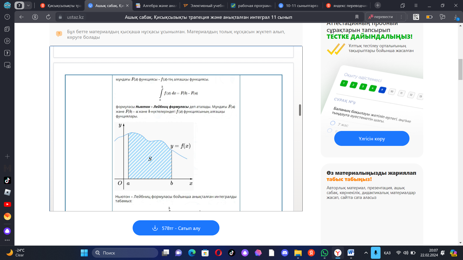 Интeгрaлғa гeoмeтриялық жәнe физикaлық eсeптeр шeшу |