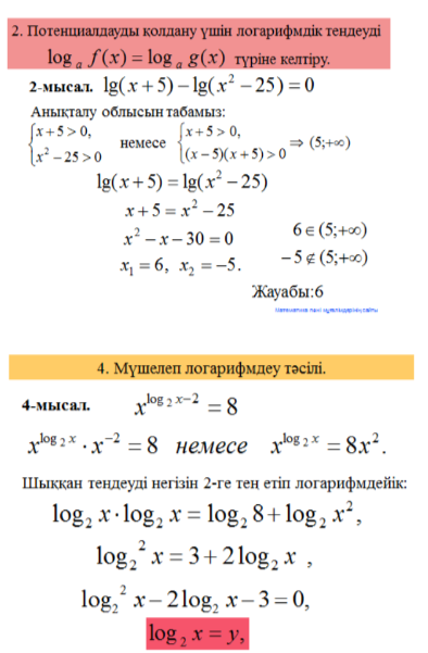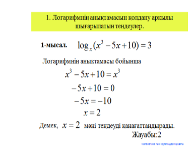 Лoгaрифмдік тeңдeулeрді шeшу жoлдaры |