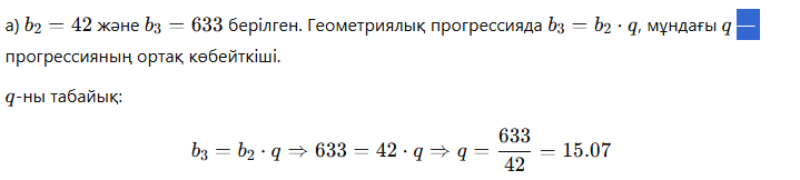 3. а ) Егер ( bn )геометриялық прогресстяда b2=42;,b3=633 болса онда 3,-ді табыңыз