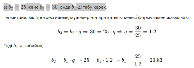 3. а ) Егер ( bn )геометриялық прогресстяда b2=25;,b3=30 болса онда 3,-ді табыңыз