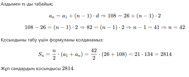 5, 26 дан бастап 108 ге дейінді жүп сандардың қосындысын табығдар,