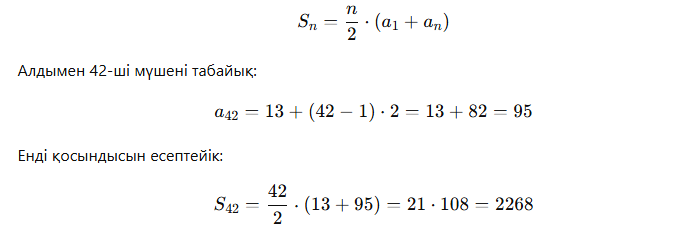 б) Алғашқы 42 мүшесінің қосындысын табу: