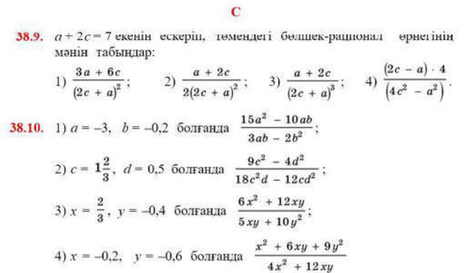 7.2.1.16алгебралық бөлшектерді танып білу; 7.2.1.17алгебралық бөлшектегі айнымалылардың мүмкін мәндер жиынын табу; 7.2.1.18алгебралық бөлшектің негізгі