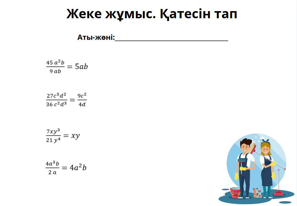Жеке жұмыс.Қатесін тап