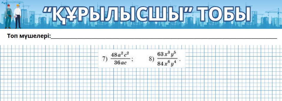 Дескриптор: -Алгебралық бөлшектің негізгі қасиетін есеп шығаруда қолданады Жалпы: 3 балл |