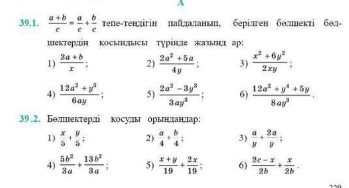 үшін Бөлімдері бірдей бөлшектерді қосқанда (азайтқанда) олардың алымдарын қосып (бірінен бірін азайтып), бөлімдерін бұрынғыша қалдырады. |