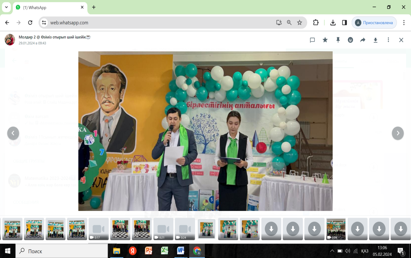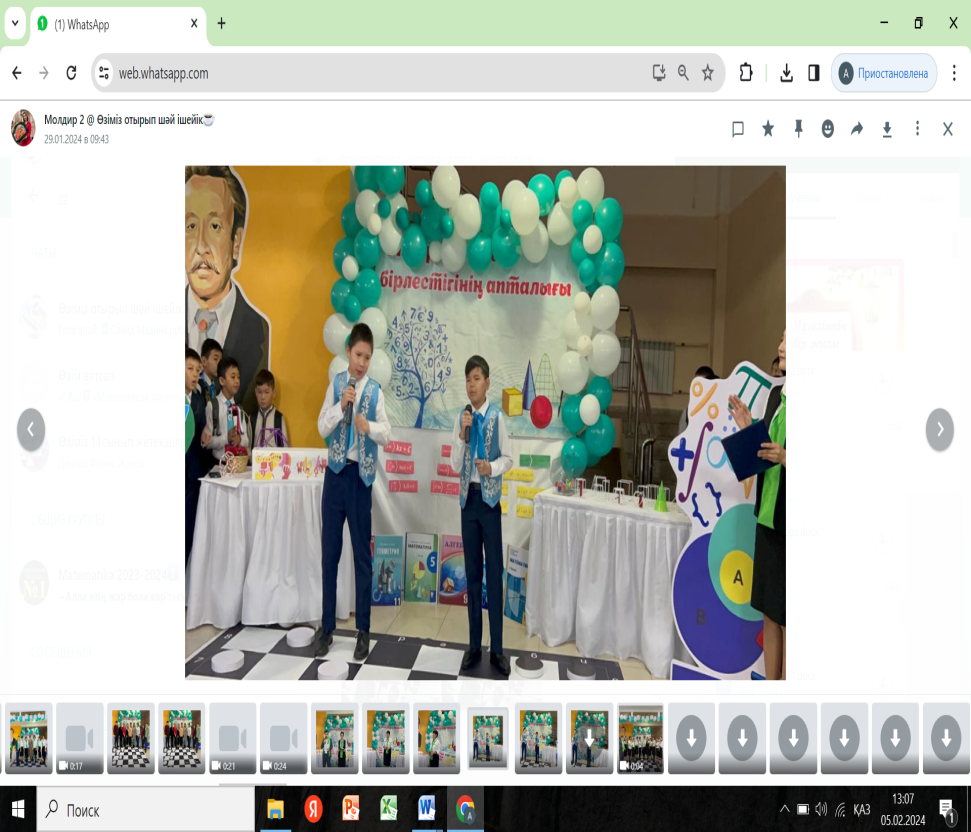 29.01.-09.02.2024 ж. аралығында математика пәнінің онкүндігі болып өтті. 29.01.24 ж апталықтың ашылуы болды. Ашылуында оқушыларға логикалық тапсырмалар қойылды, дұрыс жауап берген оқушыларға сыйлықтар берілді,интуиция әдісімен оқушыларға қызықты ойындар ойнатылды жәнеде апталықтың барысымен таныстырылды.