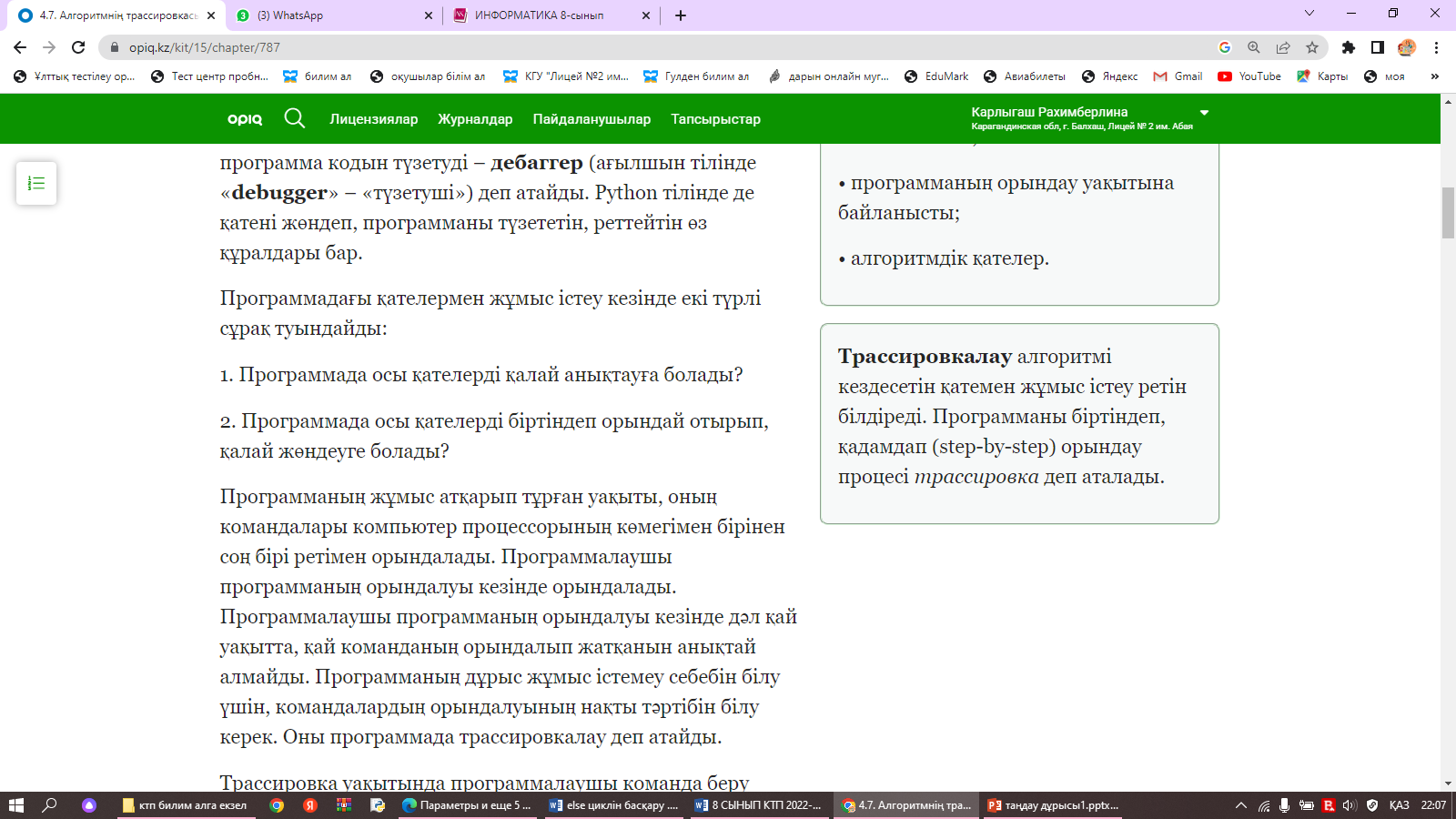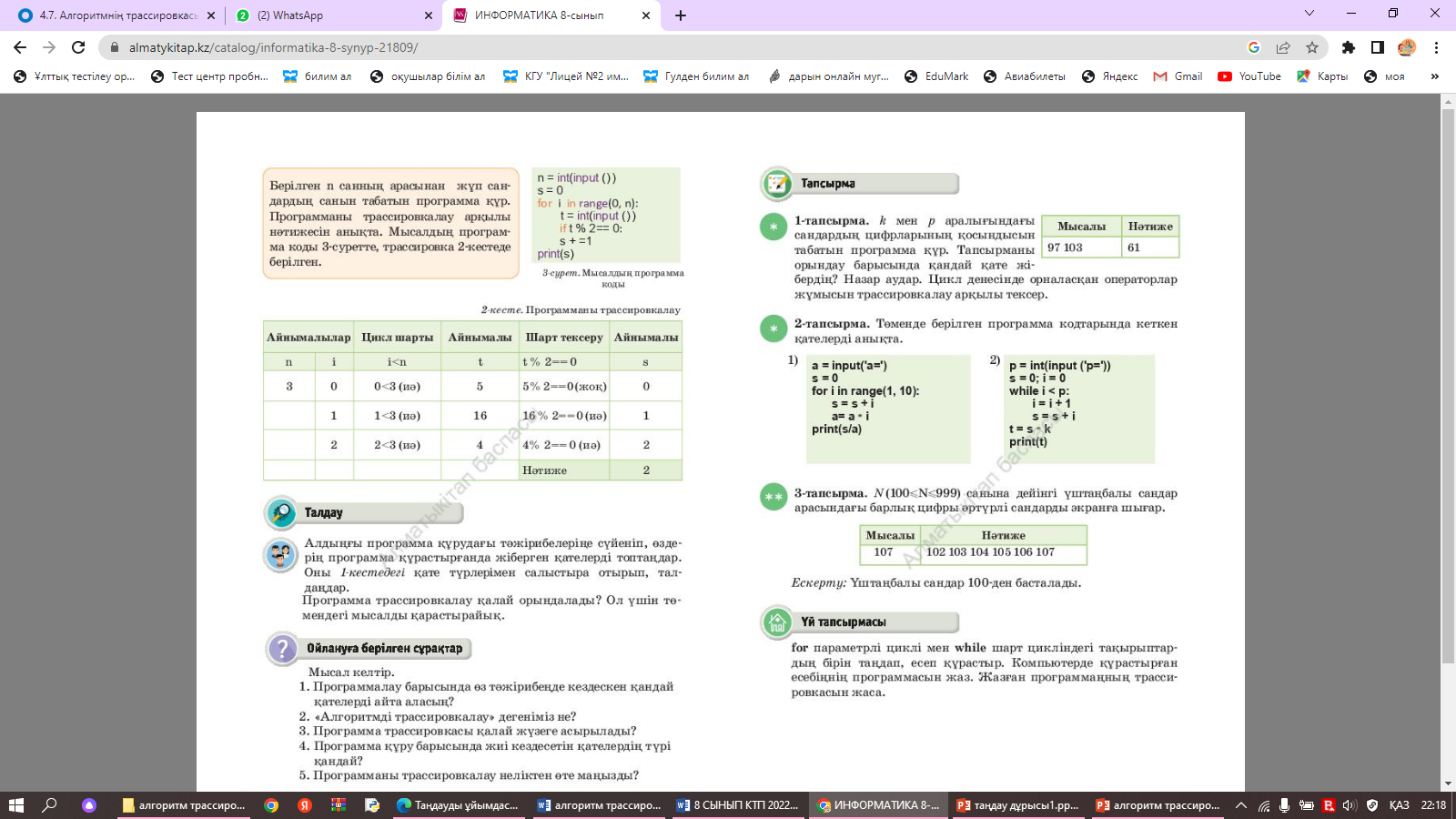 8.3.2.1 алгоритмнің трассировкасын жүзеге асыру |