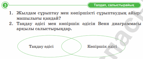 Оқулық , А-4 парақшасы, марке, стикер Вен диаграммасы Ноутбук, оқулық https://wordwall.net/ru/resource/83148747 |