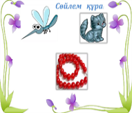 Жаңа сөздерді оқыды Әр буындағы дыбыстарды тұтастырып, «бір дыбыс» сияқты қосып, яғни дауыссыздан дауыстыға қарай және дауыстымен үндестіріп оқиды. Оқушылар сөйлемнің сызбаға сәйкес сөйлем құрайды Оқушылар жазу дәптеріндегі тапсырмалар ды орындайды Жұмбақтарды шешеді Оқушылар өздеріне берілген тапсырмала рын орындайды. Тапсырманы талапқа сай орындауға үйренеді Сөздерді оқып, сөйлем құрайды Кері байланыс жасайды |