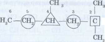 ▲ 2. Изооктанның (2,2,4-триметилпентанның) кұрылымдык формуласын жазып, кұрамында канша біріншілік, екіншілік, үшіншілік, тертіншілік көміртек атомдары бар екенін көрсетіңдер.
