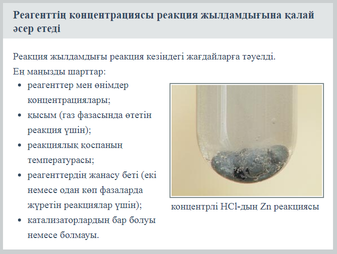 Тақырыбы: Концентрацияның реакция жылдамдығына әсері