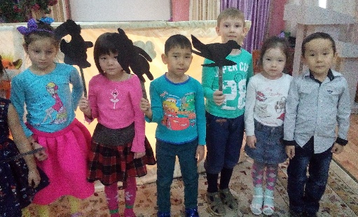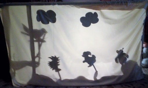 Мақсаты: Балалар көлеңкелі театр туралы түсіне білу, есте сақтау арқылы рольдерге бөліп, ауызекі сөйлеуге баулу. Бір-бірін сыйлауға, тату болуға, қолындағын бөлісіп жеуге, әділдікке тәрбиелеу.