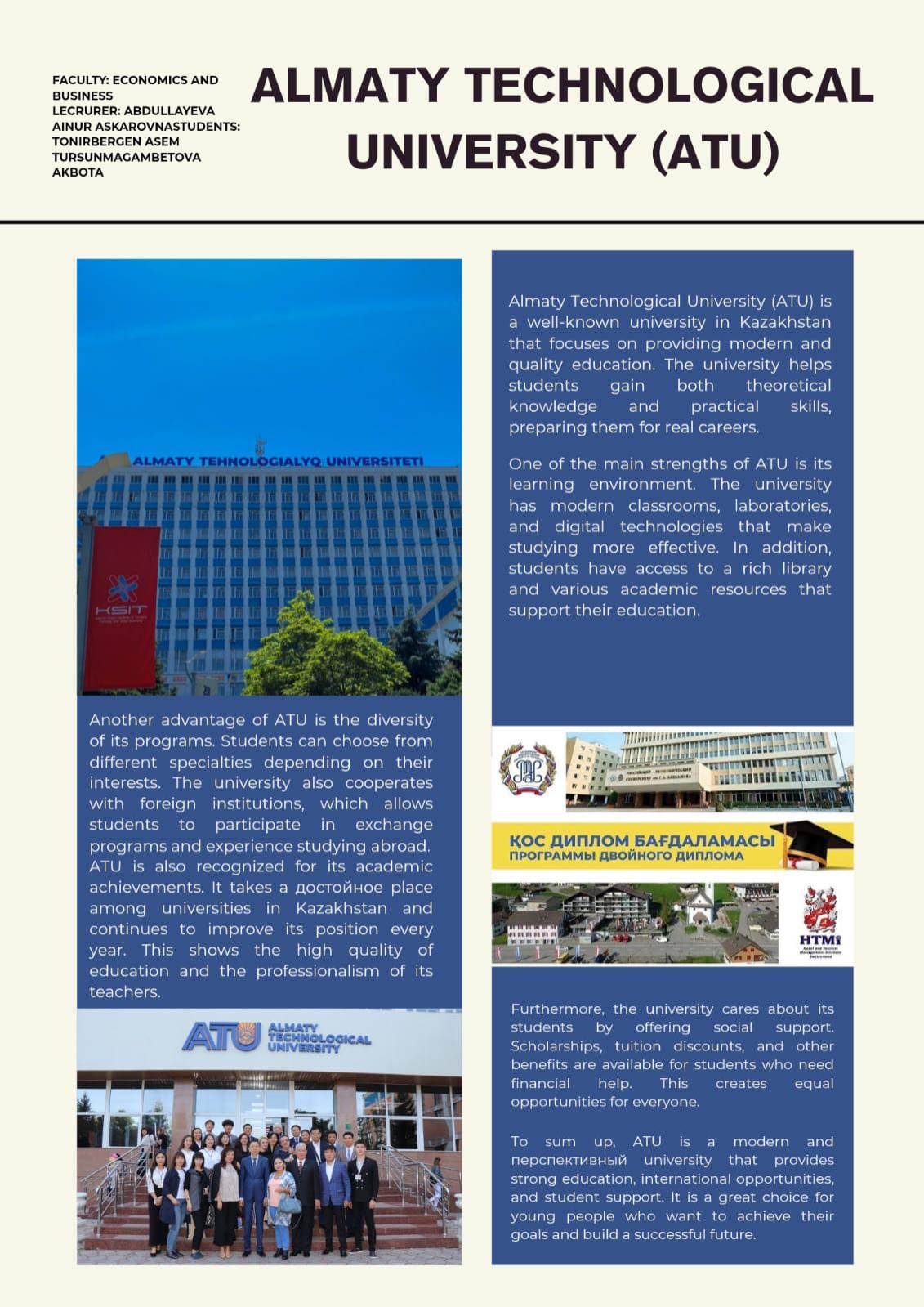 Алматы технологиялық университеті жайында қысқаша мазмұны