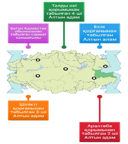 Дескриптор: Қазақстан териториясында «Алтын адам» жәдігерлерінің табылған аумағын көрсетеді;