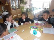 Ертегі мазмұнымен танысу үшін тізбектей мазмұндау тәсілі таңдалды. Дарынды, қабілетті оқушы Арсен тізбектей оқуға қатысып қана қоймай, тобындағы сыныптастарына: - Бір-бірімізді тыңдап отырайық, енді сен жалғастыр,– дегенді айтып, көшбасшылық әрекетті анық ұстанды. /М. 7/