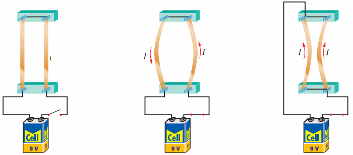бойынан ток өткен өткізгіштердің өзара әрекетін зерттеді. |