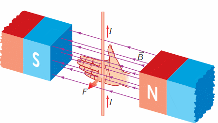 Магнит индукциясы сызықтары мен өткізгіштегі токтың бағыттары