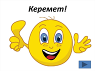 Дескриптор: Ережемен танысады және түсінеді Мәтін құрайды Заттың сынын білдіретін сөзді табады Тамаша!