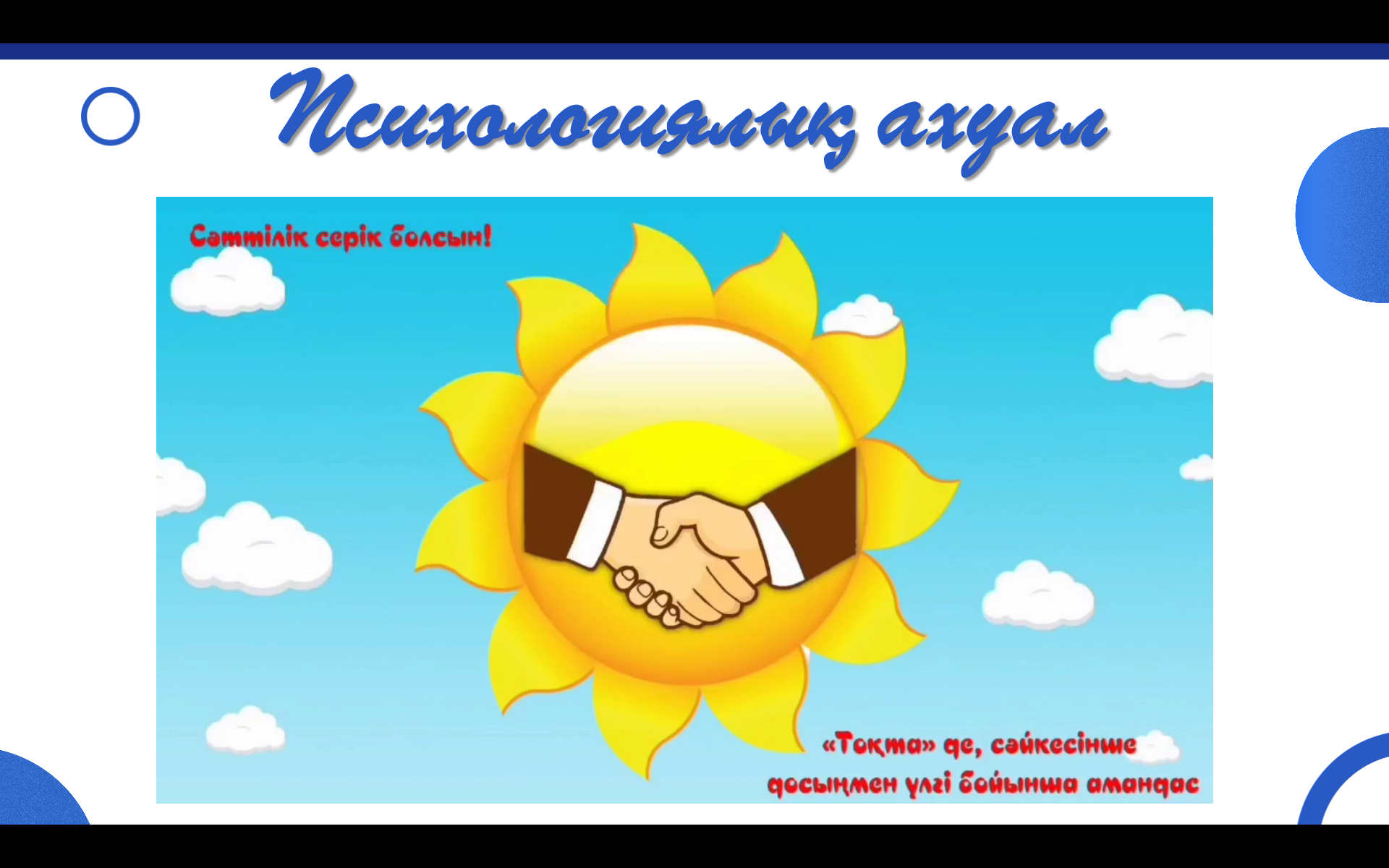 Ұйымдастыру кезеңі Оқушылармен амандасу, түгендеу. Психологиялық ахуал. Сыныпта жақсы көңіл күй мен ынтымақтастық атмосфера қалыптастыру.