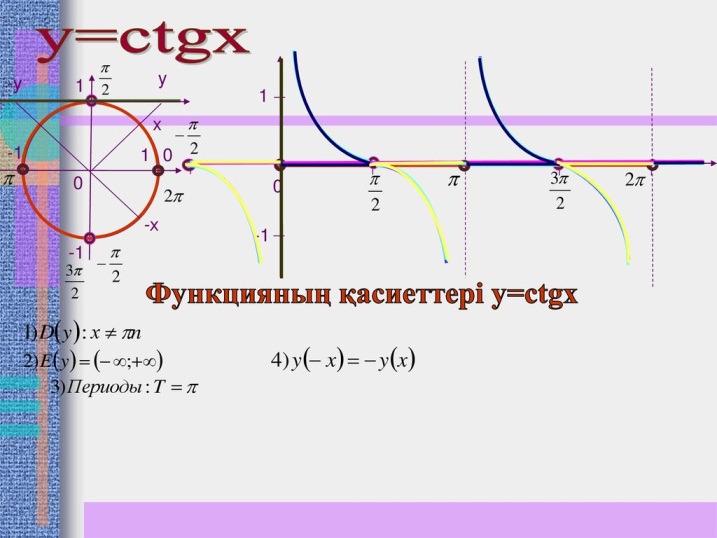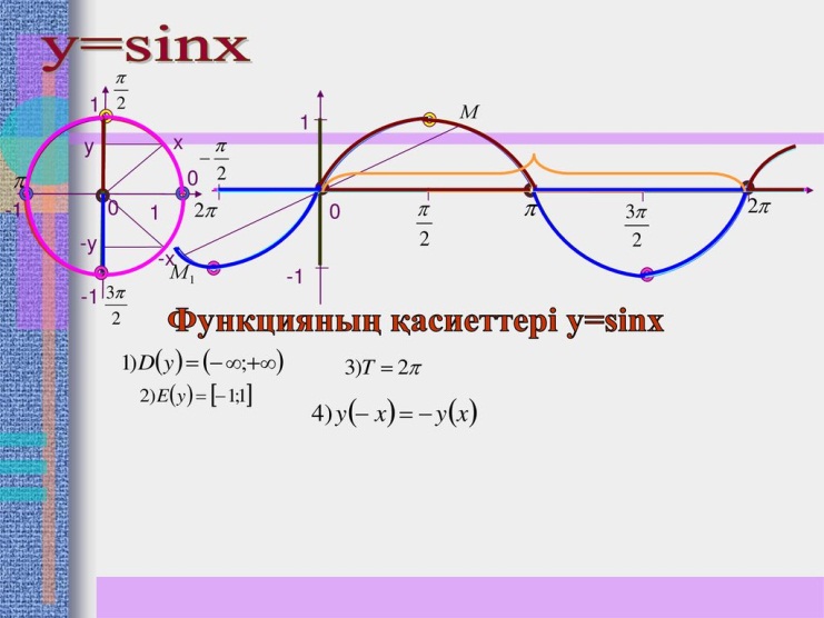 1)Тригонометриялық функцияларды түсіндіру; 2) Тригонометриялық функциялардың графиктері бойынша қасиеттерді оқу. |