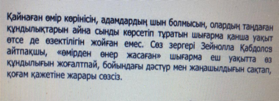 1тапсырма. Шығарма үзінділерінен құндылық түрлерін анықтаңыздар.