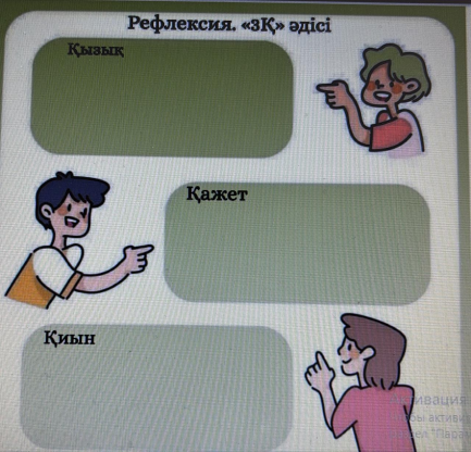 Дескриптор: -Шығармада көтерілген мәселені талқылайды, өмірмен байланыстырады-1; -Шығарманың мазмұны бойынша сұрақ құрастырады-1; -Шығарма мазмұны бойынша өзіндік көзқарас білдіреді-1.