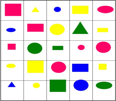 Қандай фигуралардың түсі көбірек (мөлшері, пішіні).