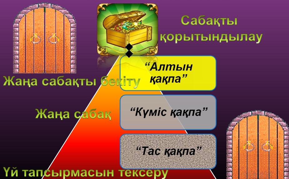 Тас қақпа тапсырмасы: үй тапсырмасын пысықтау мақсатында, «Өрмекші торы» әдісі арқылы оқушылардың бұған дейінгі сабақтарда алған білімдерін тексеру арқылы тас қақпадан өтеміз.
