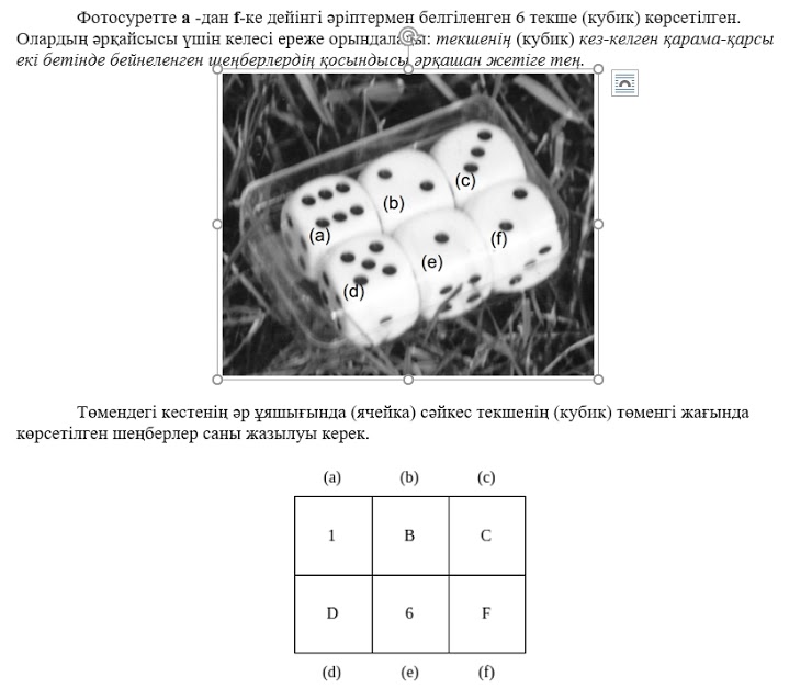 Жоғарыда «жайылған» (развернутый) күйдегі төрт текше (кубик) берілген, олардың ішінен кез-келген қарама-қарсы екі бетінің қосындысы жетіге тең болатындай, қанша ойын текшелерін (кубик) жинауға болады? *