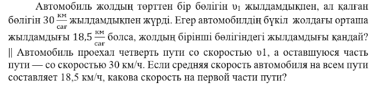 Екі дос бір уақытта ауылдан 2,5 км жерде орналасқан ауылдағы дүкенге жол тартты. Оларда тек бір орындық велосипед бар. Достардың келісуі бойынша әуелі бірінші бала велосипедке мініп, сосын оны жолда қалдырып, жаяу жүрді, сосын екінші бала алдымен жаяу жүріп, велосипедке жеткенде оған отырып, жолдың қалған бөлігін велосипедпен жүріп өтті. Егер екі дос бір мезетте дүкеннің жанына жететін болса, олар жалпы үйден дүкенге дейін қанша уақытта жетті. Жаяу адамның жылдамдығы 4,2 км/сағ, ал велосипедте 18 км/сағ. || Два друга одновременно направились в магазин, который находится в 2,5 км от деревни. У них есть только один велосипед. По договоренности, сначала первый друг садится на велосипед, потом оставляет его и идет пешком, затем второй друг сначала идет пешком, а когда добирается до велосипеда, садится на него и проезжает оставшуюся часть пути. Если оба друга одновременно достигают магазина, сколько времени они потратили на путь от дома до магазина? Скорость пешехода — 4,2 км/ч, а скорость на велосипеде — 18 км/ч.