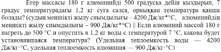 E) Темірдің тығыздығы қардың тығыздығымен бірдей/ Плотность железа равна плотности снега