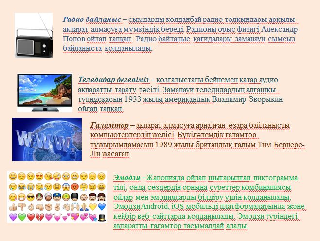 5.2.1.2- байланыс араналары, ақпарат көздері және қабылдағыштарының мысалын келтіру |