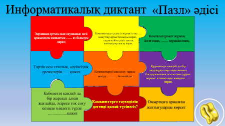 Үй тапсырмасын тексеру. «Пазл» әдісі арқылы өткен сабақты қайталау