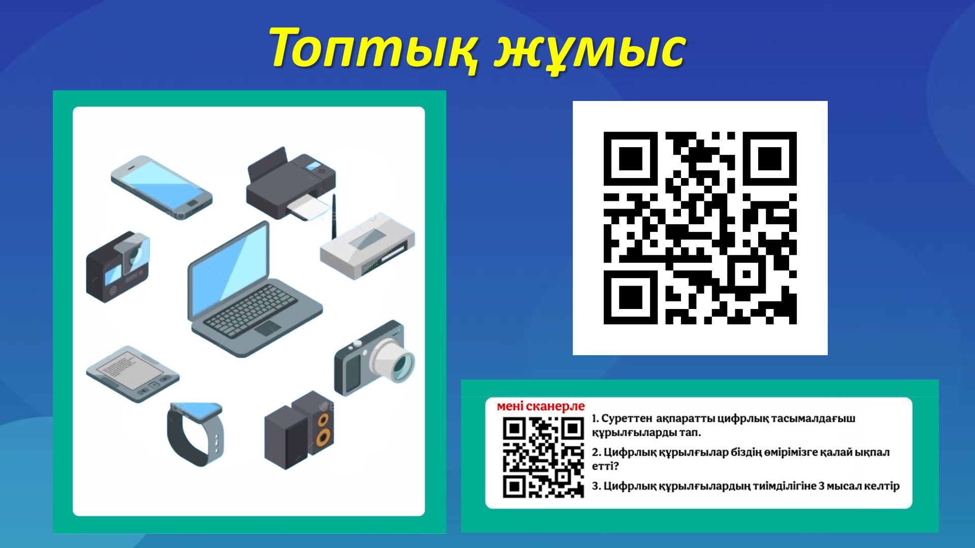 Топтық тапсырма. QR кодты сканерлеу арқылы тапсырманың 3Д бейнесін көреді.