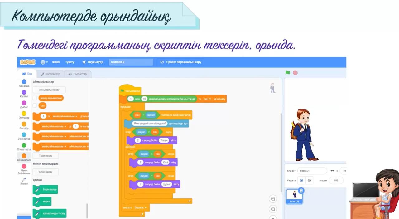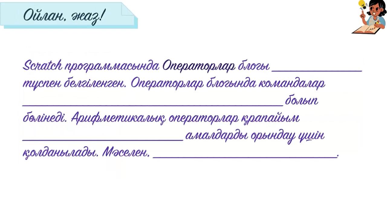 2 - тапсырма Scratch программалау ортасының программа блоктарын орында