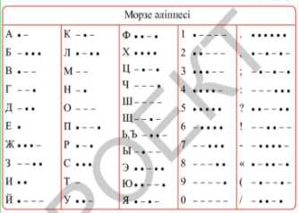 Тапсырма 1. Жұптық жұмыс «Морзе әліппесін» пайдаланып, келесі сөздерді кодтаңдар: