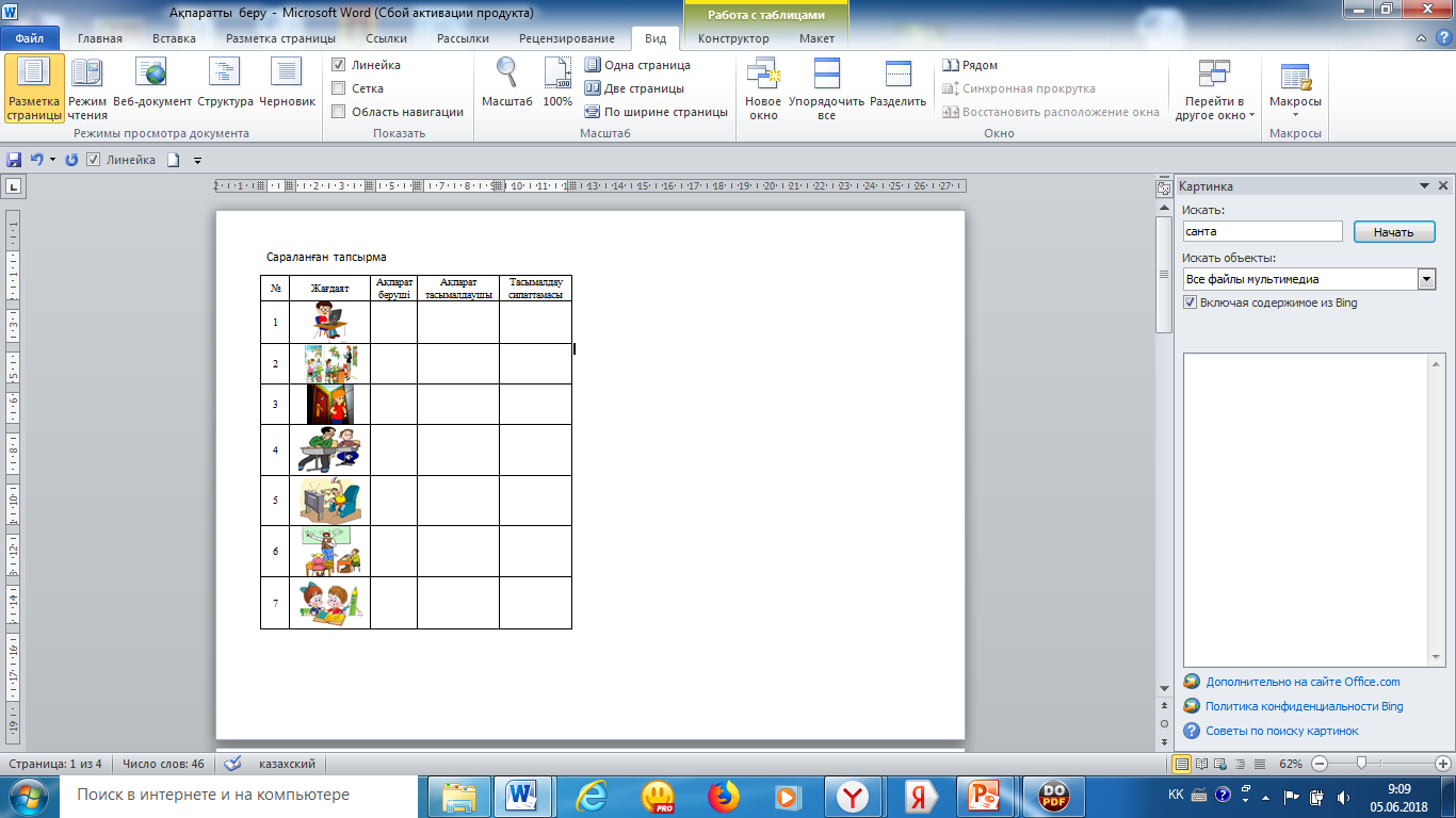 (Ө, Қ) «Телефон» әдісі №2 Тапсырма WhatsApp желісінде таратылады. Төменде берілген сөздерді тиісінше орысша, қазақша, ағылшынша тілдерге аударып, дәптерге жазыңыз: Информация, channel, тасымалдаушы, принимающий, Information channels Дескриптор: Оқушылардың тілдік қоры дамиды. ҚБ : бірін-бірі бағалау, топты бағалау «Су таразысы» әдісі Сараланған тапсырма: (Ө,Қ) «Кестедегі тақырыптық тенис» әдісі. №3. А)Суретте келтірілген жағдаяттарға байланысты кестені дәптеріңе толтырыңыз: